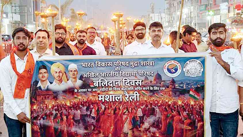 મુંદરામાં બલિદાન દિવસે યોજાયેલી મશાલ રેલીમાં મોટી સંખ્યામાં નગરજનો જોડાયા