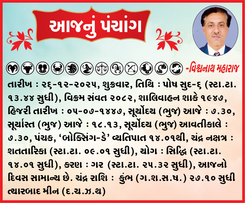 • શુક્રવાર, 26 ડિસેમ્બર, 2025