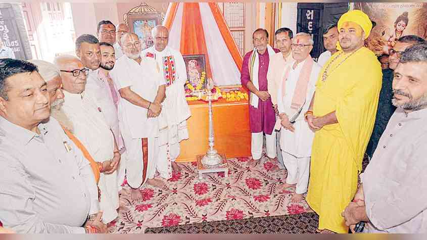 પત્રિકા દેવોને અર્પણ કરાઇ હતી. ભુજ સ્વામિનારાયણ મંદિરના મહંત પુરાણી ધર્મનંદનદાસજી સ્વામી, ઉપમહંત સદ્. સ્વામી ભગવદજીવન સ્વામી,