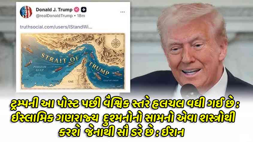 હોર્મુઝના નક્શા સાથે ટ્રમ્પે લખ્યું, `સ્ટ્રેટ ઓફ ટ્રમ્પ'!