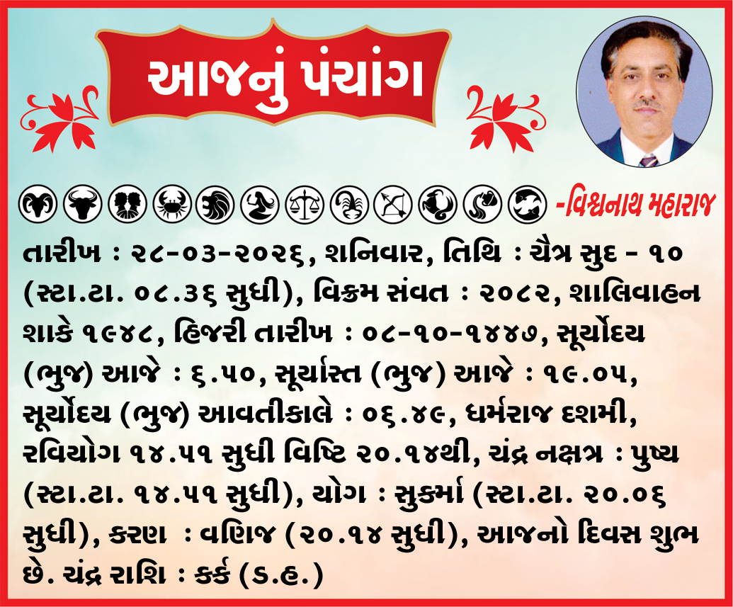 તા. 26, 27, 28-3-2026 શનિવાર સુધી નિવાસસ્થાન