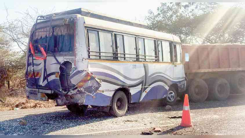 ઉભેલા સિમેન્ટ ભરેલા ટ્રક સાથે બસનો અકસ્માત સર્જાયો હતો. ટક્કર એટલી પ્રચંડ હતી કે