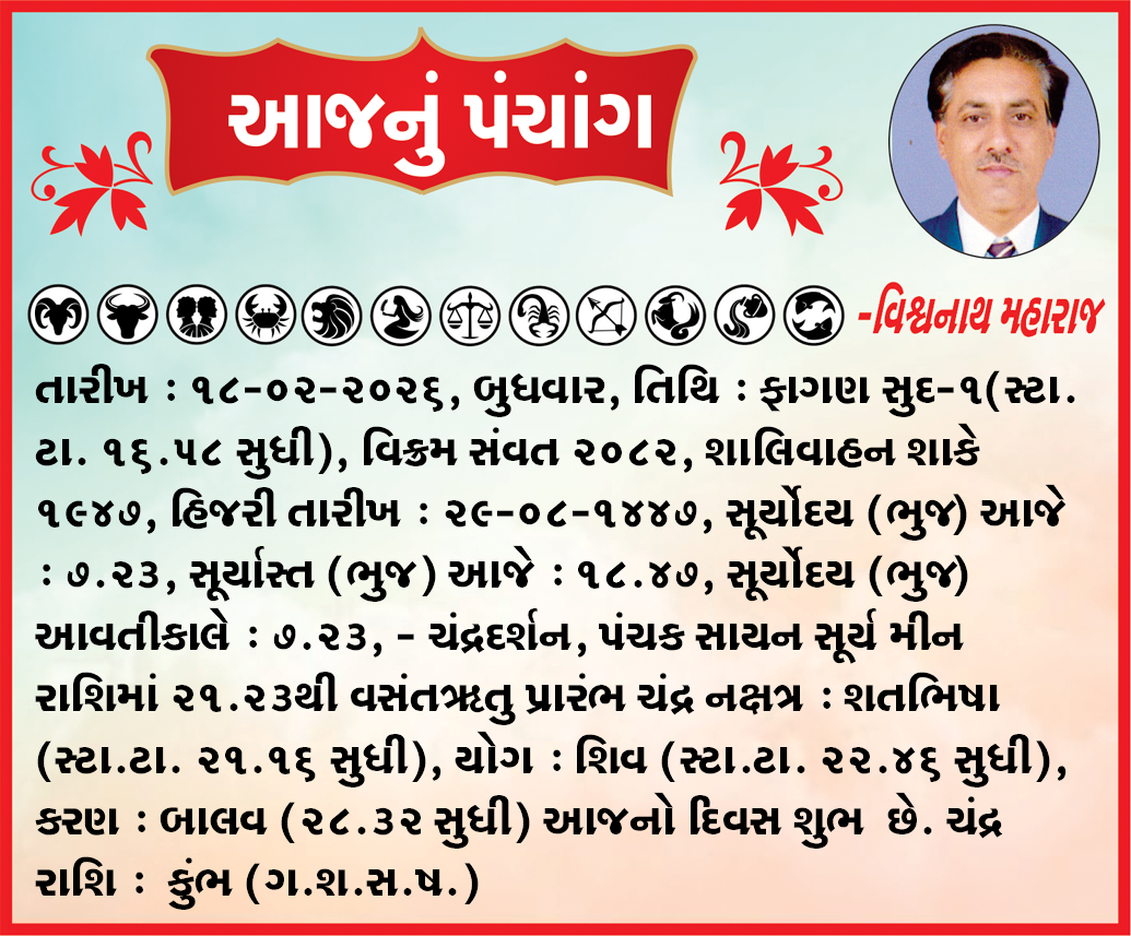 • બુધવાર, 18 ફેબ્રુઆરી, 2026